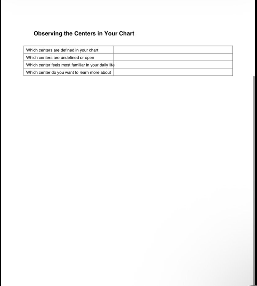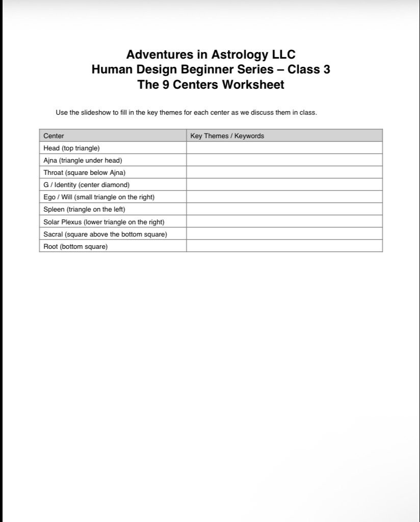 Human Design Class 3 Worksheet